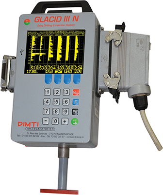 La gamme GLACID est unique par sa multifonctionnalité. Mis en service en 2008, cet appareillage innovant a permis de regrouper par sa programmation, les différentes applications, les plus utilisées dans les travaux publics et fondations spéciales, dans un seul appareil. Les programmes disponibles sont : Le forage/ Gestion automatique pour 1 ou 2 lignes d’injection / Injection Solide/ Pieux / Jet Grounting / Essai Piézométrique et surveillance d’Ouvrage d’art. Une saisie simplifiée et accessible à tous, un affichage clair et lumineux, une imprimante thermique intégrée mais aussi un nouveau mode de stockage numérique intelligent de 10Mo avec une récupération des données par clé USB dont DIMTI INSTRUMENTATION a été le précurseur. 5 modèles distincts sont disponibles.