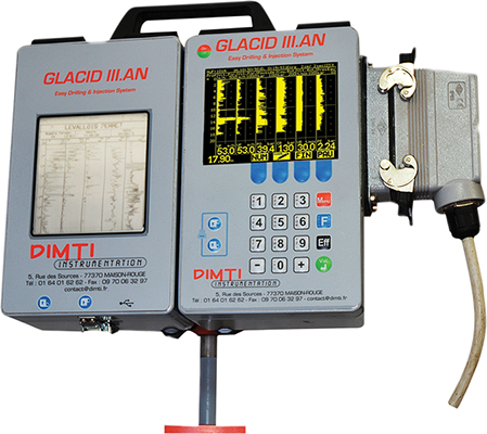 La gamme GLACID est unique par sa multifonctionnalité. Mis en service en 2008, cet appareillage innovant a permis de regrouper par sa programmation, les différentes applications, les plus utilisées dans les travaux publics et fondations spéciales, dans un seul appareil. Les programmes disponibles sont : Le forage/ Gestion automatique pour 1 ou 2 lignes d’injection / Injection Solide/ Pieux / Jet Grounting / Essai Piézométrique et surveillance d’Ouvrage d’art. Une saisie simplifiée et accessible à tous, un affichage clair et lumineux, une imprimante thermique intégrée mais aussi un nouveau mode de stockage numérique intelligent de 10Mo avec une récupération des données par clé USB dont DIMTI INSTRUMENTATION a été le précurseur. 5 modèles distincts sont disponibles.